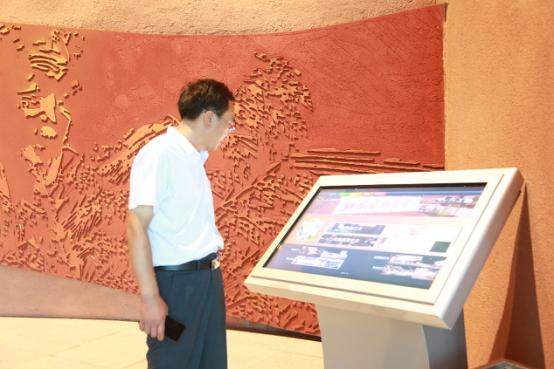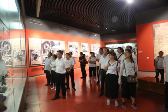 学校党支部书记、校长谢本林认真查看红旗渠介绍