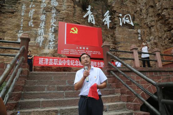 在青年洞前举行延津县职业中专纪念建党98周年主题党日活动—学校党支部书记谢本林讲党课
