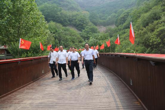 7月15日,学校党员干部在党支部书记、校长谢本林的带领下,到林州红旗渠举行延津县职业中专建党98周年主题当日活动,追寻英雄足迹,学习英雄事迹。