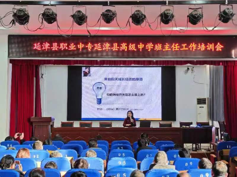 为了全面提高学校班主任的专业素质和能力,加强班主任学习和交流平台建设,努力探索新时期班主任工作规律,不断提高班主任政治思想素质和育人能力。2023年12月22日,延津县职业中等专业学校邀请全国著名实战派班主任、河南首届最美教师、最具影响力班主任、最具智慧力班主任李迪老师到校为全体班主任进行专题培训。