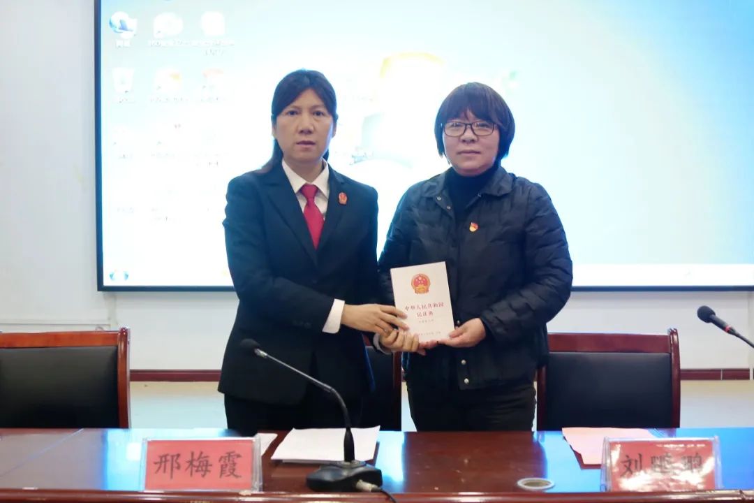 授课结束时,邢梅霞院长向师生代表们赠送了《民法典》等法律宣传手册。并鼓励同学们要珍惜当前的美好时光,把向往美好未来放在心上,把拼搏学习垫在脚下,在人生道路上走得更正、走得更远。这堂有故事、有趣味、有温度的思政课,赢得了在场学生们的阵阵掌声。