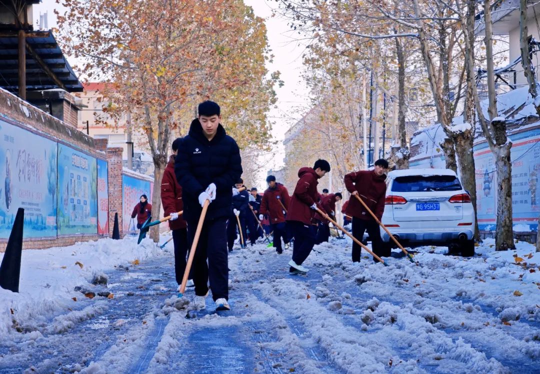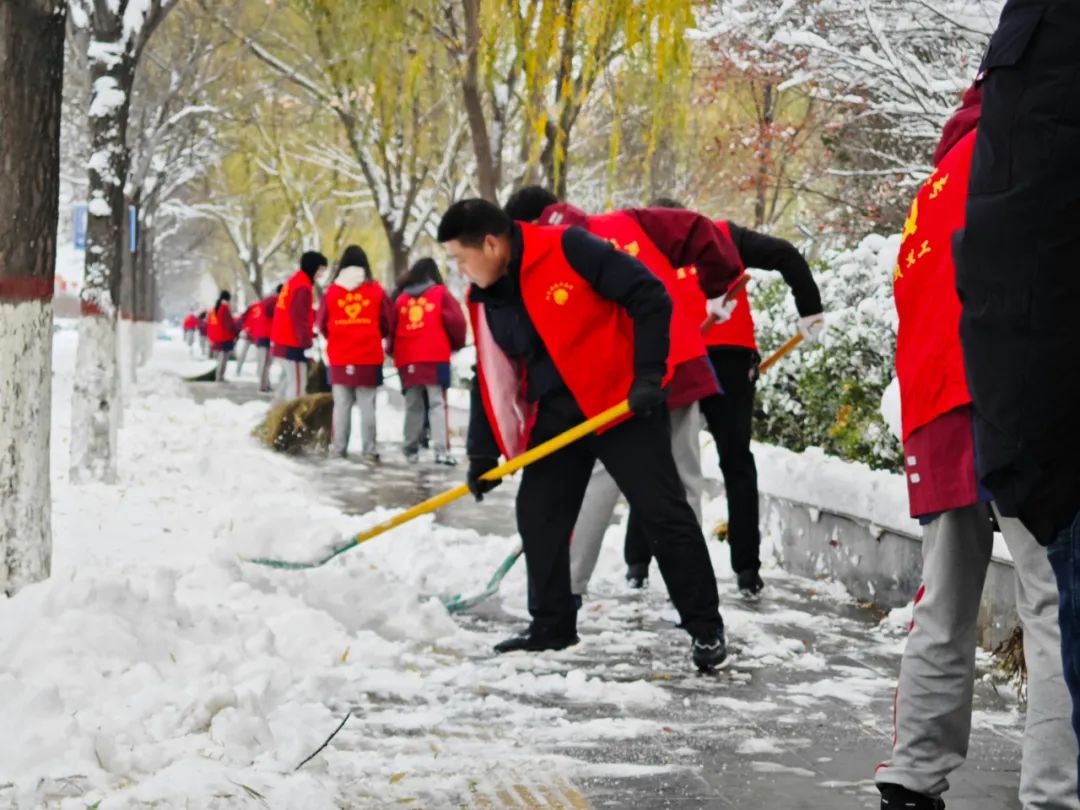 12月10日晚,一场大雪为整个校园穿上银装。这场雪给广大师生带来惊喜和兴奋的同时,厚厚的积雪也给师生的出行带来了不便。为切实做好寒潮雨雪天气防范应对工作,消除校园安全隐患,保障师生出行,助力延津县文明城市和卫生县城创建工作。11日早,在校党总支刘鹏鹏书记的领导部署下,我校积极组织广大师生清扫校园和责任路段的积雪。