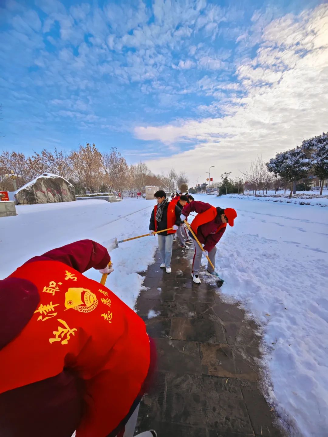 校党总支刘鹏鹏书记带领师生铲雪除冰